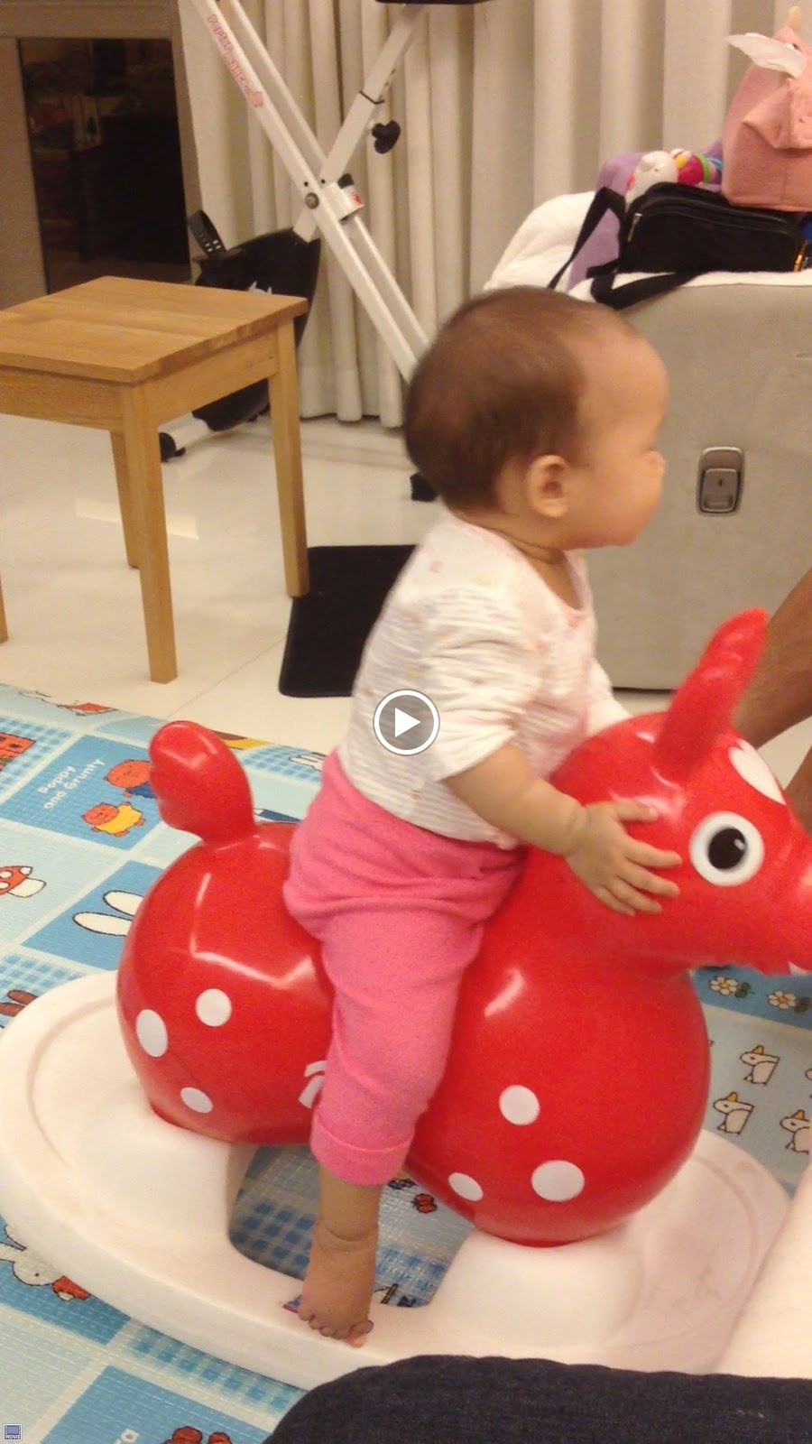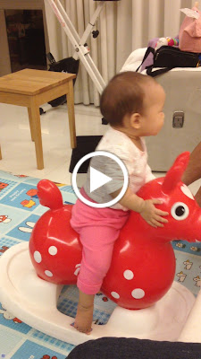 會自己坐搖搖馬囉! 還會說”搖~”呢!